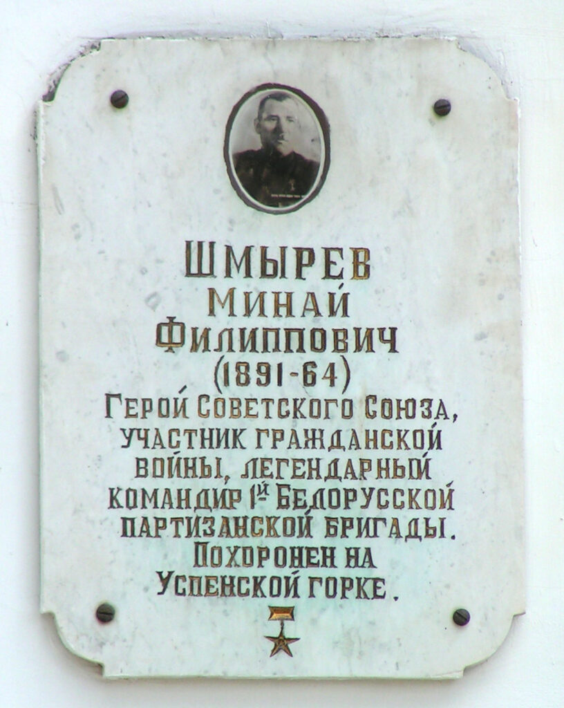Минай Филиппович Шмырёв (1891-1964) – один из организаторов партизанского движения в Беларуси во время Великой Отечественной войны, командир партизанского отряда и 1-й Белорусской партизанской бригады (партизанский псевдоним «Батька Минай»), участник Гражданской войны, Герой Советского Союза (1944), Почетный гражданин города Витебска (1964).
